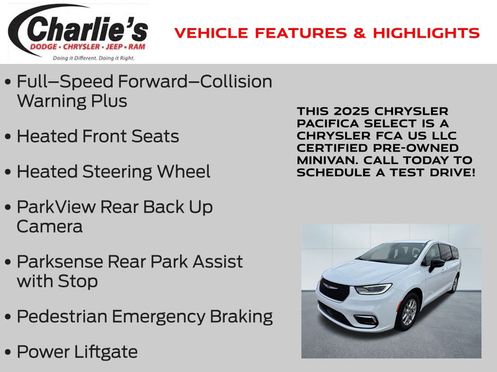 Bright White Clearcoat 2025 Chrysler Pacifica Select FWD 9-Speed 948TE Automatic 3.6L V6 24V VVT