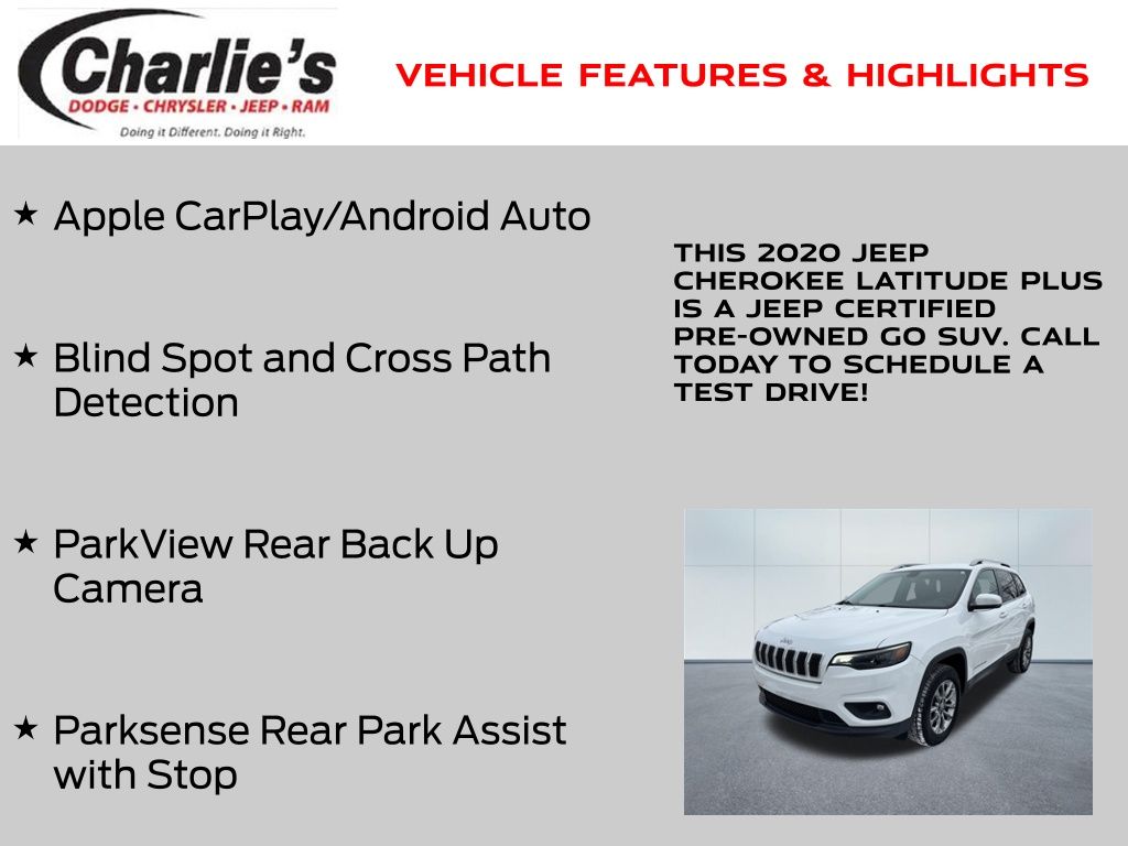 Bright White Clearcoat 2020 Jeep Cherokee Latitude Plus 4WD 9-Speed 948TE Automatic 2.4L I4